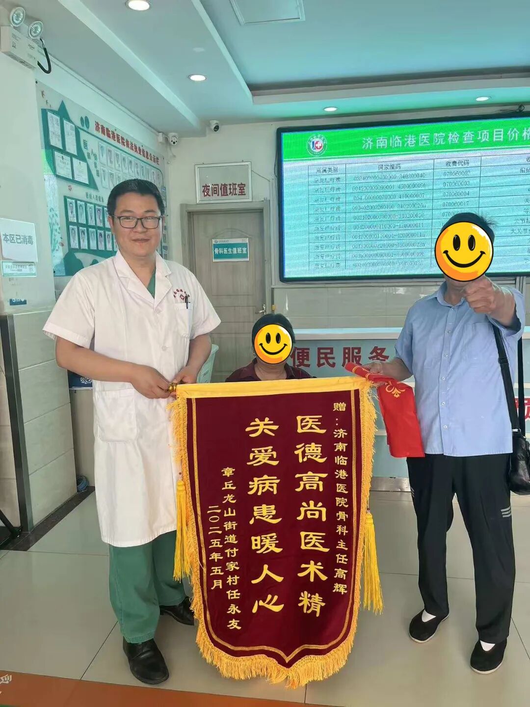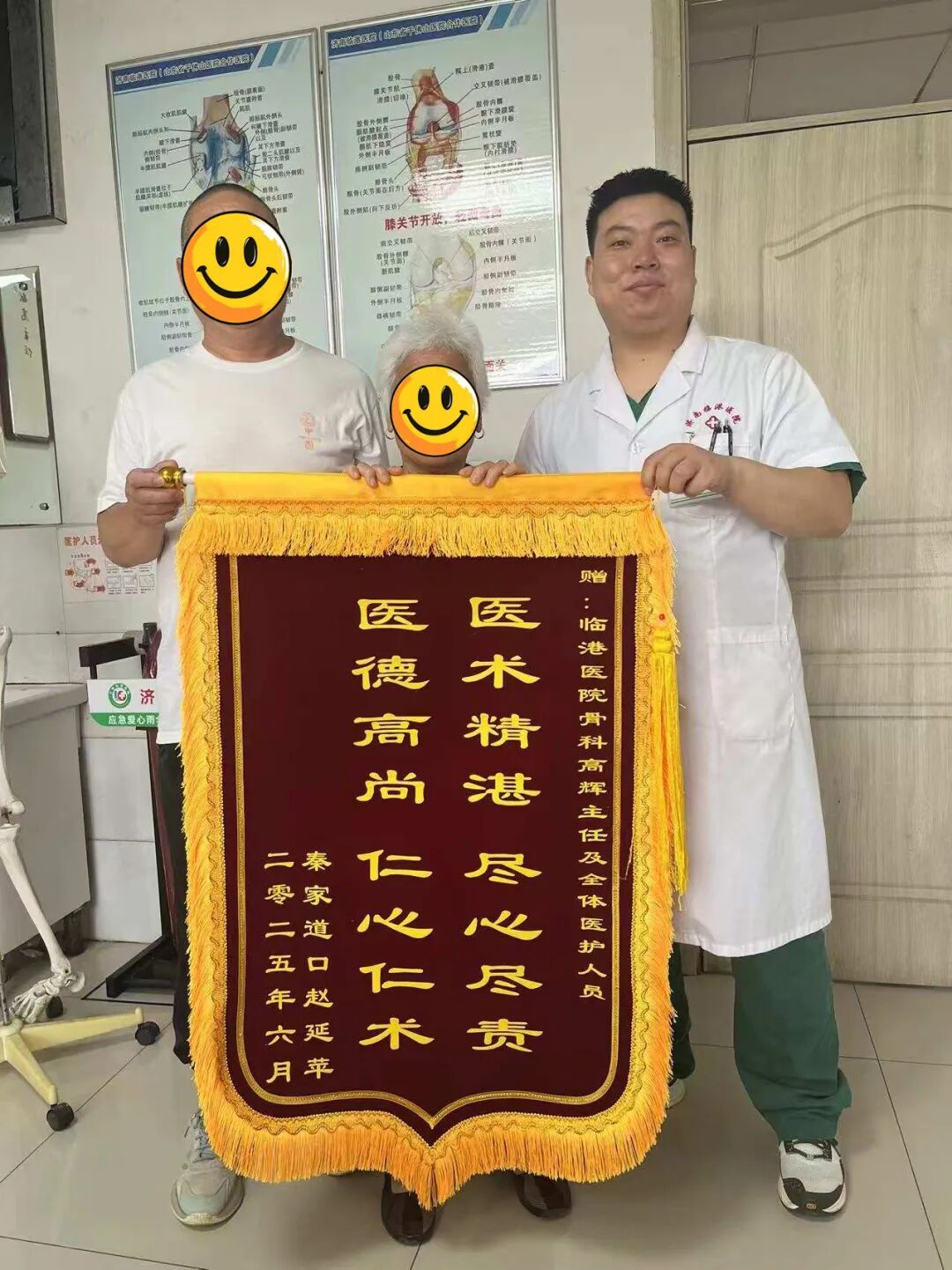 患者赵女士,因左膝骨性关节炎住院,完善检查行左侧全膝关节置换术,术后第一天患者辅助助行器下床活动,对本次手术效果非常满意,为表达对骨科高主任及全体医护人员表示感谢,特送锦旗一面。