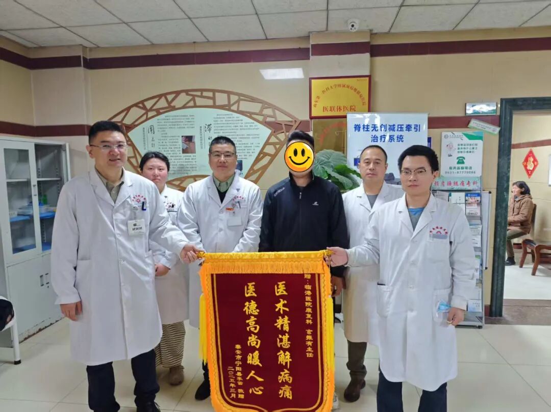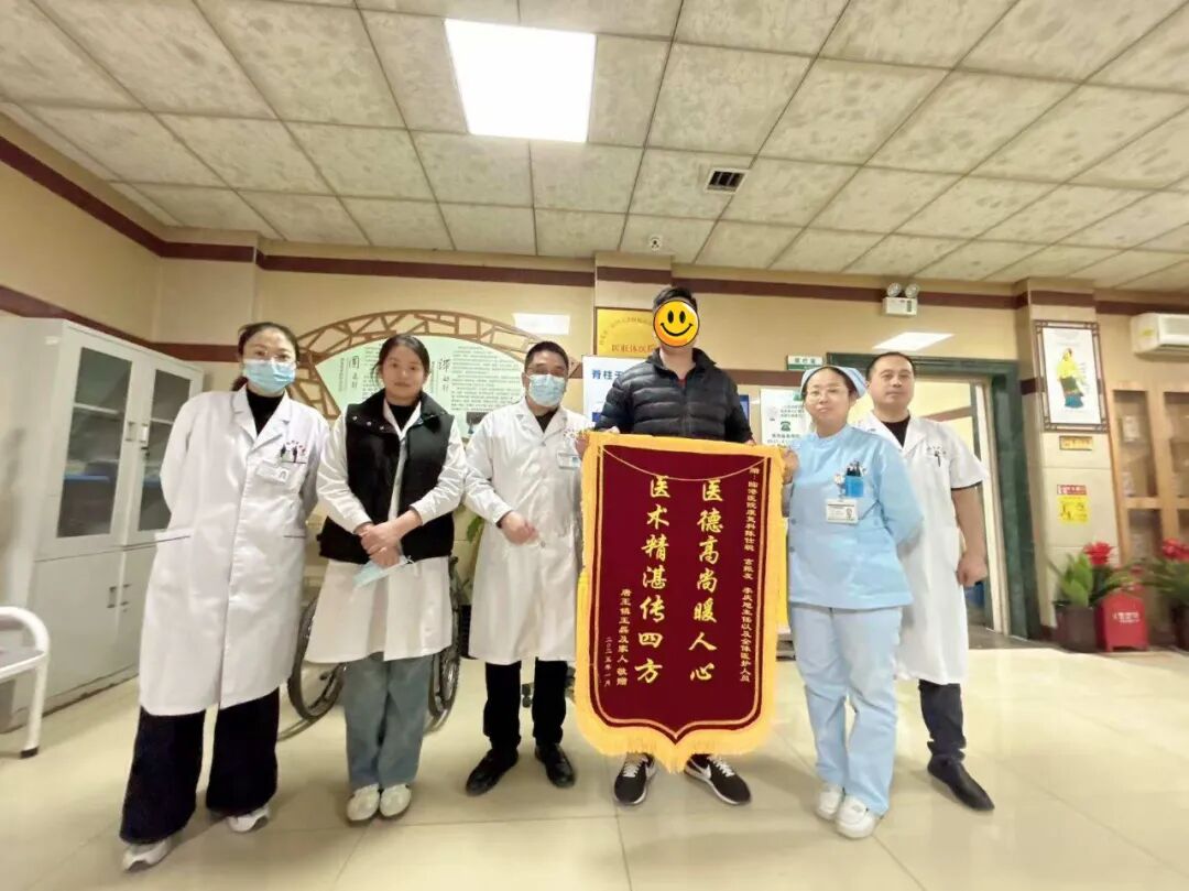 患者郭先生,因头晕剧烈在泰安多家医院就诊无效后转入我院,经我院颈肩腰腿痛科中西医综合治疗后患者症状明显好转。患者及家属对我院颈肩腰腿痛科的诊疗服务十分满意,特送锦旗以表感谢!