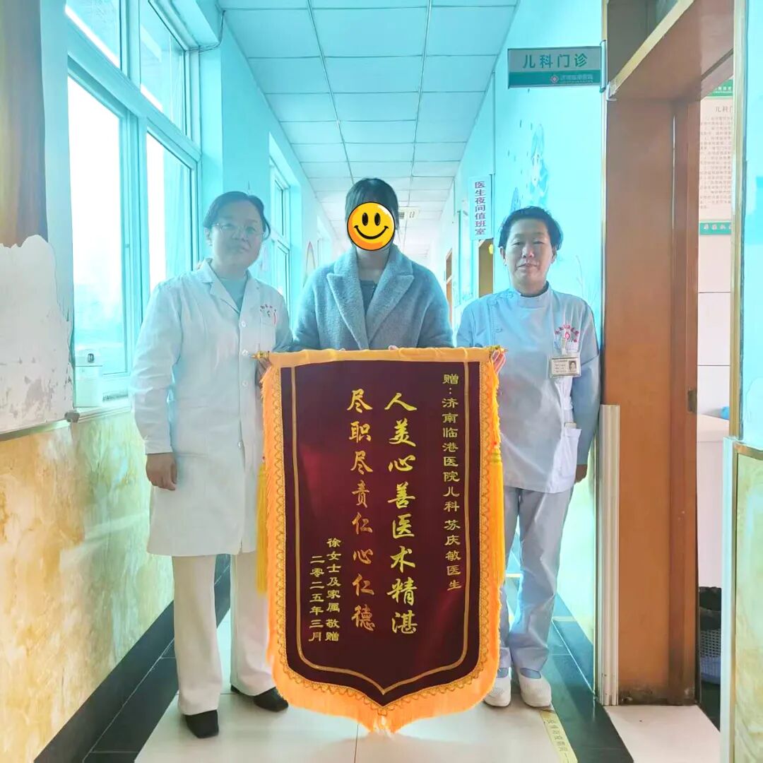 儿科一名患儿因经常感冒发烧频繁入院治疗,我院儿科苏庆敏主任在咨询诊疗过程中尽心尽责,积极帮助患儿改善体质,家属对儿科苏庆敏主任的诊疗及服务非常满意,特赠送锦旗一面!